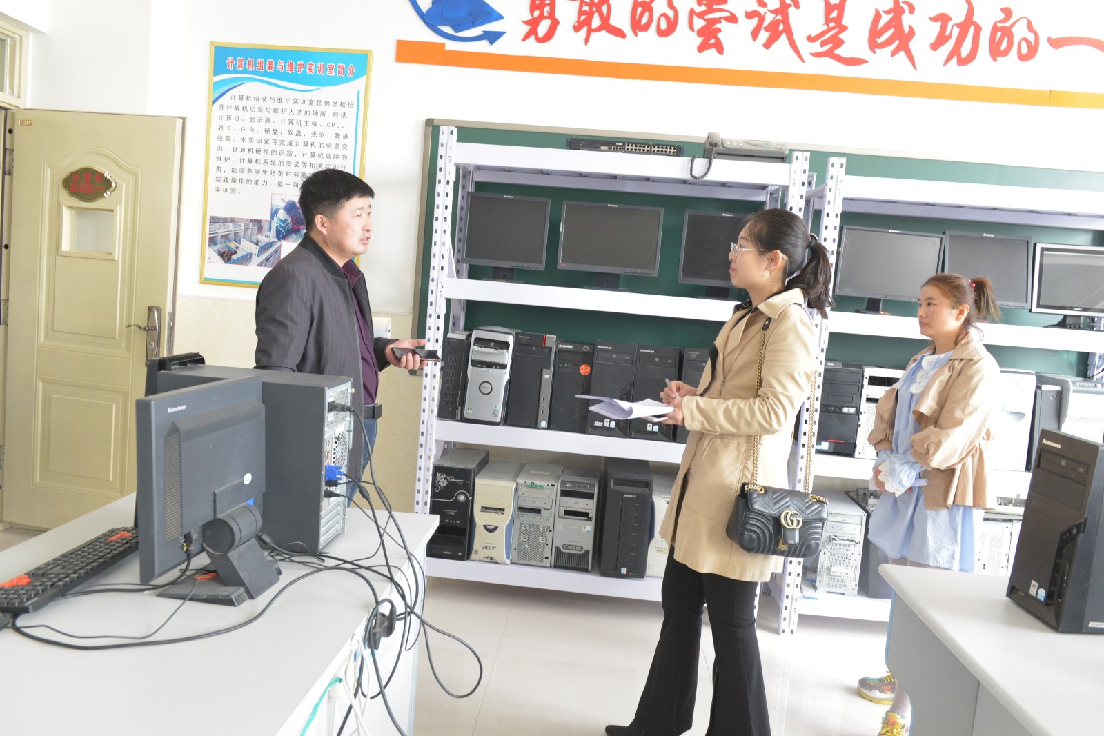 之后,在边主任的陪同下,责任督学和家长督学查看了我校旅游、汽修、机电、医护等实训室,重点查看实训室条件配备情况和上课记录,两位督学对我校实训室干净整洁的卫生环境给予了充分的肯定,同时,也对我校存在的问题提出了中肯的意见和建议。